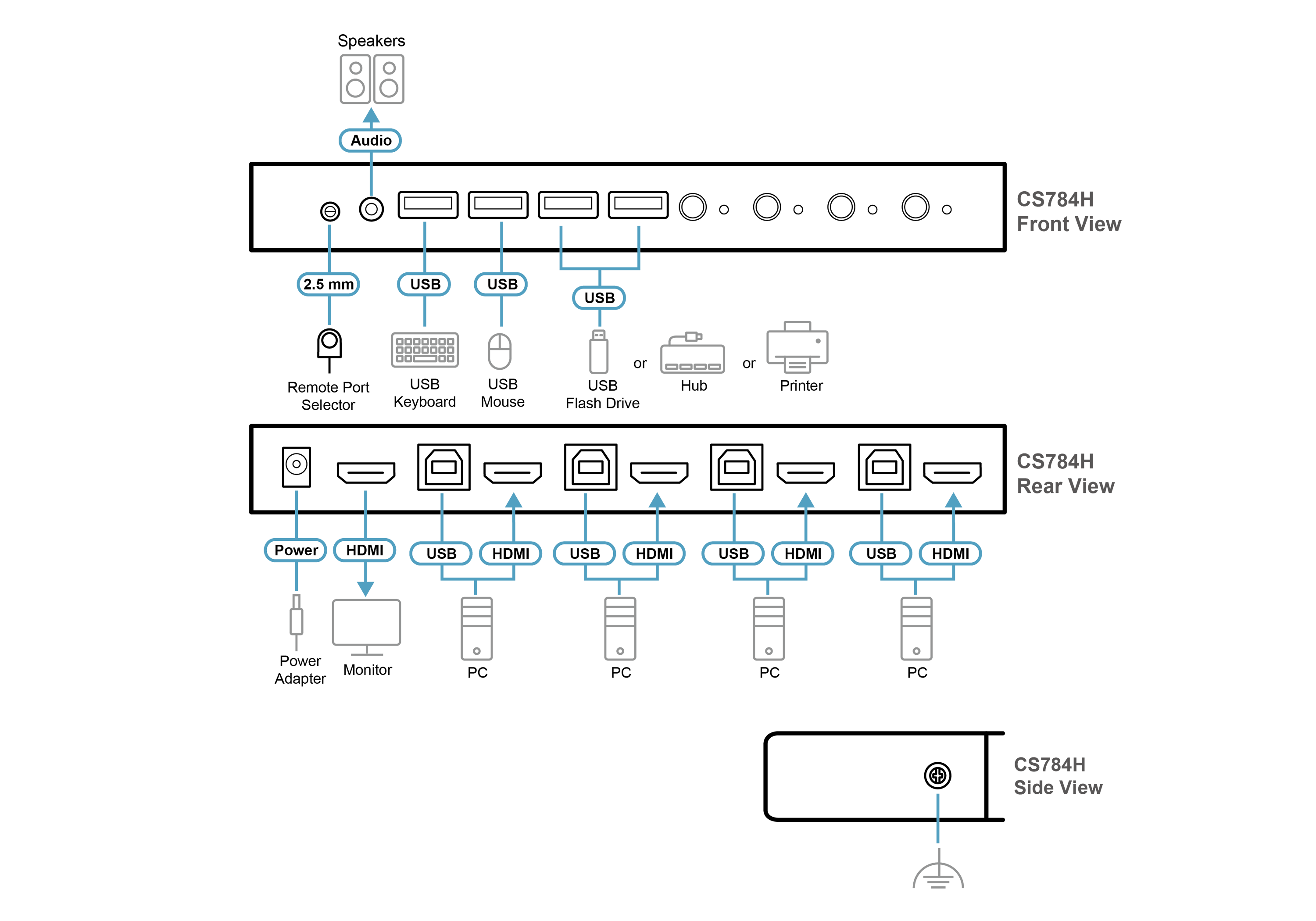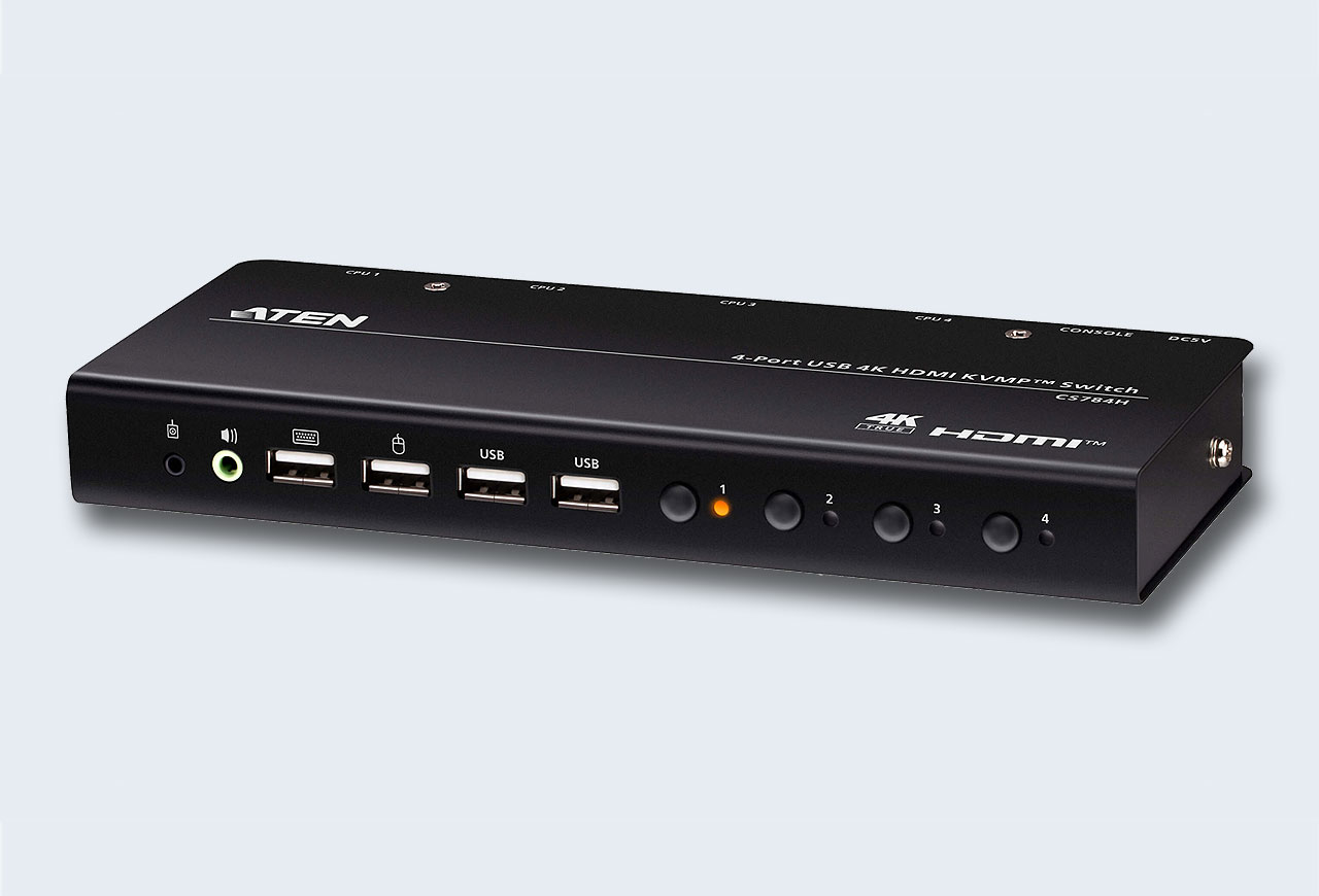 Переключатель Switch, KVM HDMI, 1> 4 компьютера/блока/порта/port USB, со шнурами USB/HDMI 4x1.2, (консоль упр.USB)