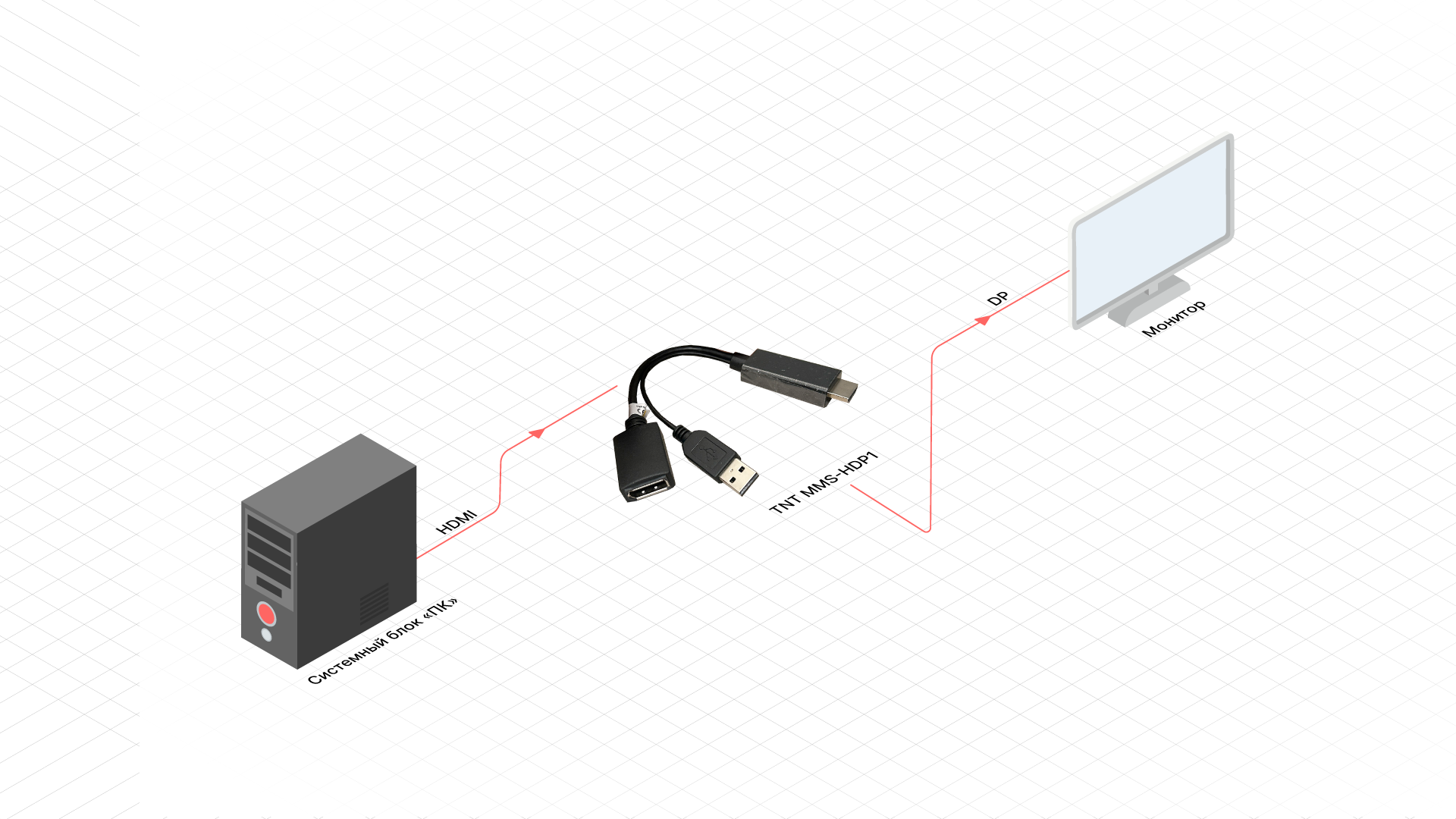 - Преобразует сигналы HDMI для вывода в DisplayPort