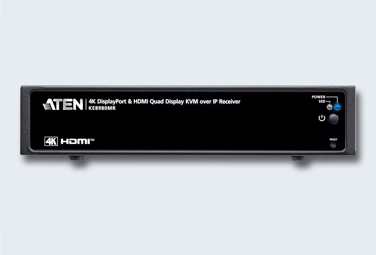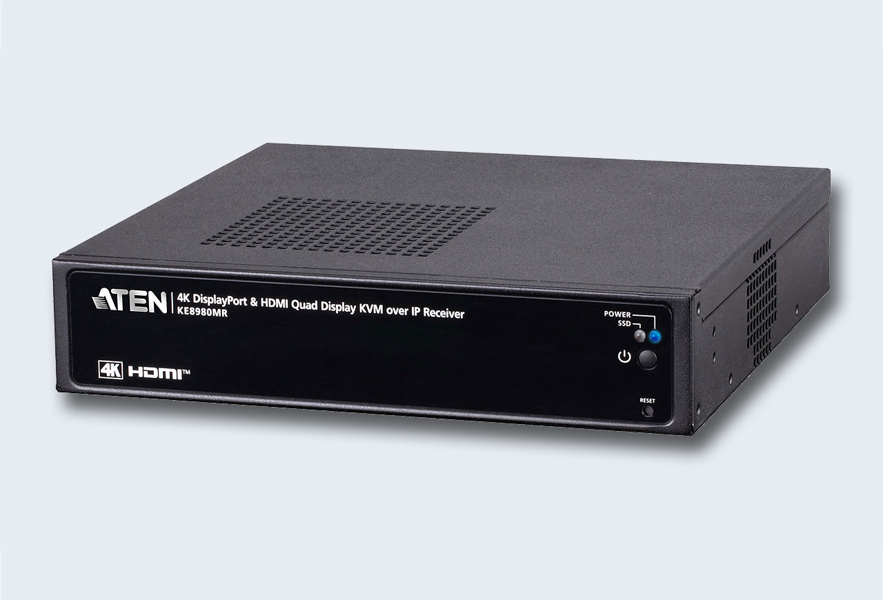 Удлинитель-приемник, KVM USB 2x(DP+HDMI), 100м. UTP точка-точка/неогранич. в пределах LAN, 1xUTP;GbE (TCP/IP;IGMP), макс.разр.4096x2160 60Hz 4:4:4, 2x(DP+HDMI)+4xUSB A+DB9, DC 12V
