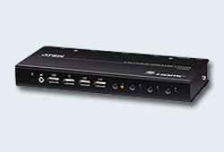 Переключатель Switch, VGA/SVGA+KBD+MOUSE, 1> 4 блока/порта/port USB, со встр. KVM-шнурами USB 2x0.9м.+2x1.2м., (консоль упр. - USB;аудио функция;DDC2B)